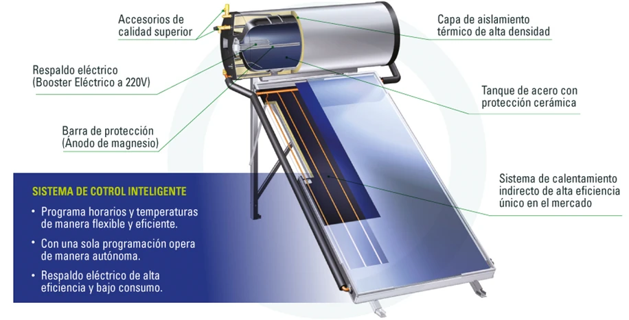 • Termas Solares Eficientes: Nuestros sistemas de termas solares utilizan espejos cilíndricos para concentrar la energía solar y calentar el agua de manera eficiente. Esto garantiza temperaturas más elevadas y un funcionamiento óptimo, lo que se traduce en un ahorro significativo en tus facturas energéticas. Una elección inteligente y ecológica para el calentamiento de agua.